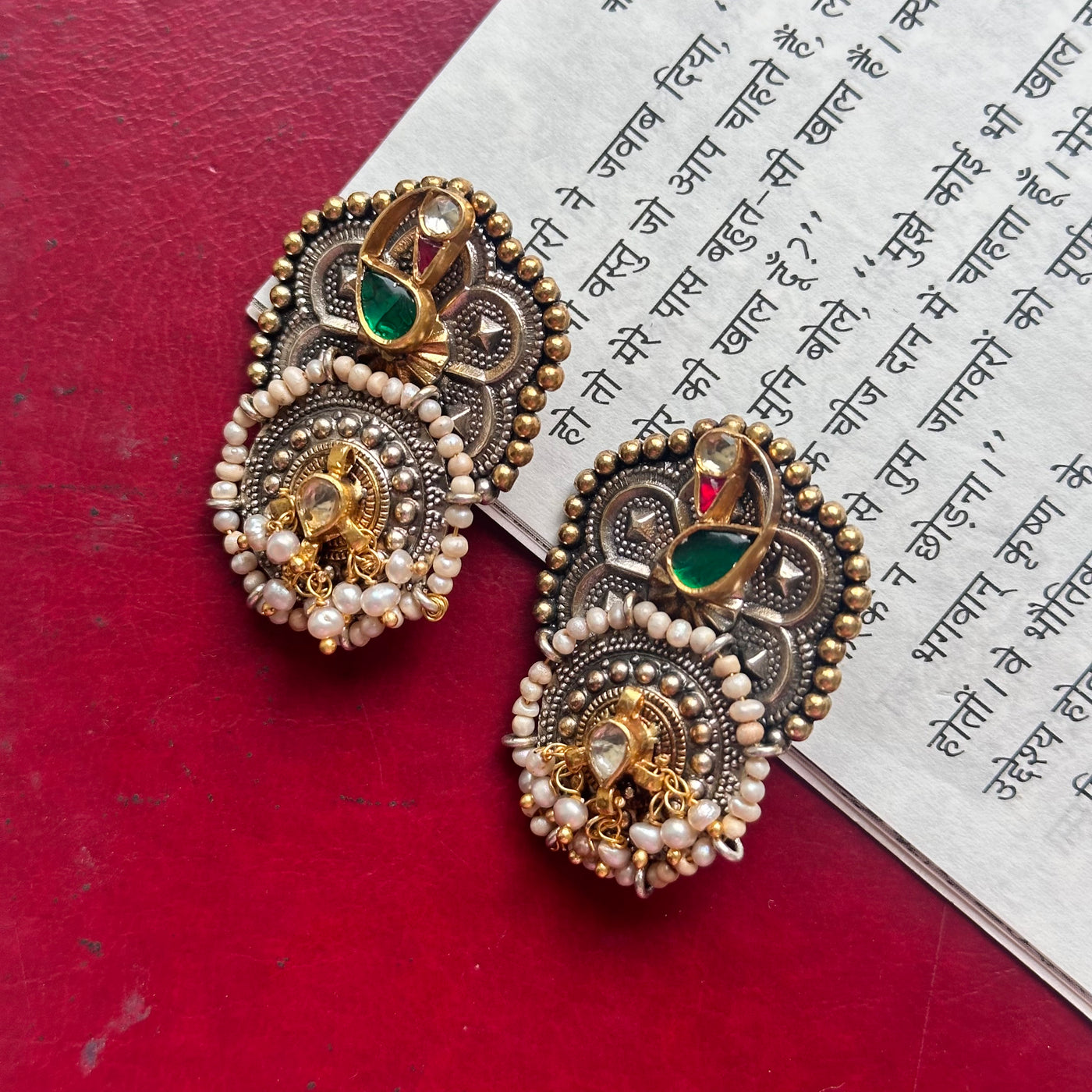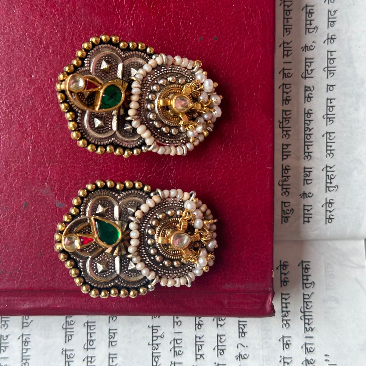 Resha Gold Plated Dual Tone 925 Hallmarked silver studs style earrings